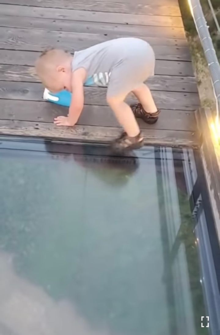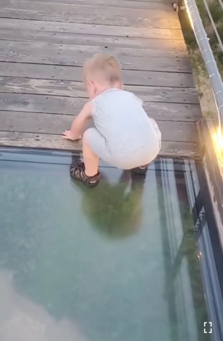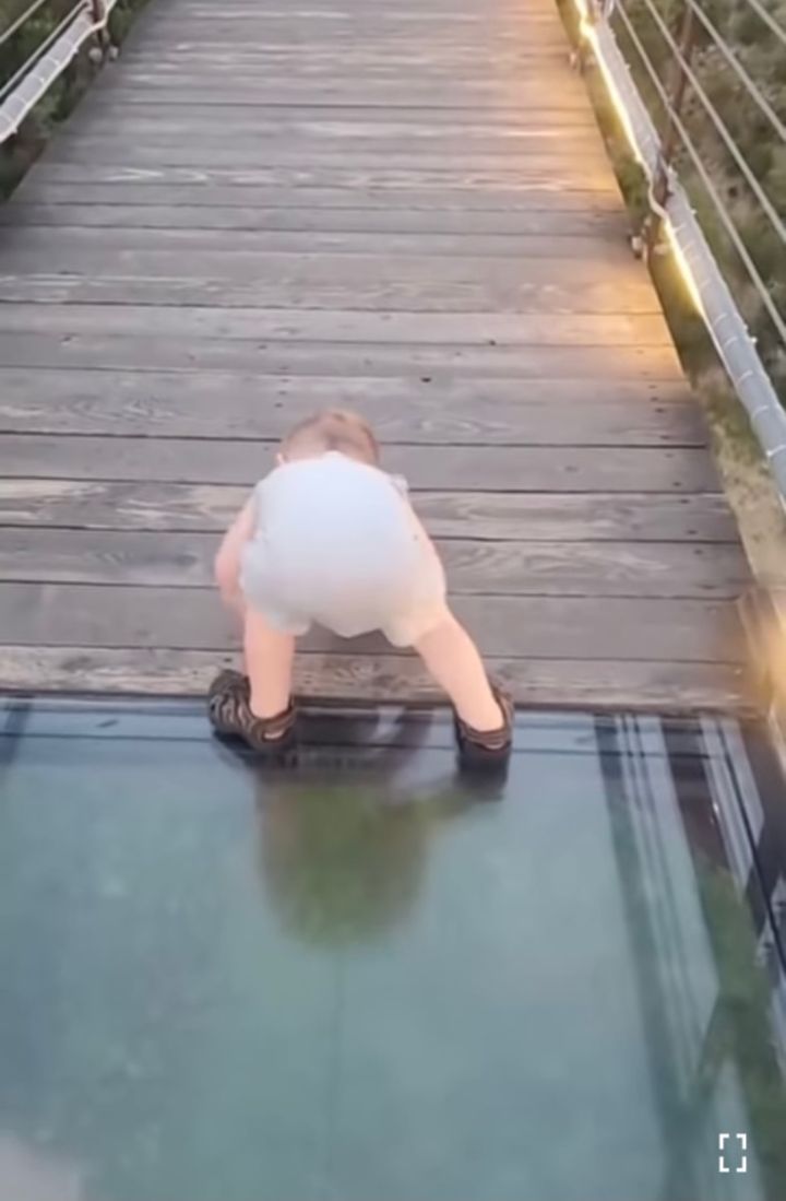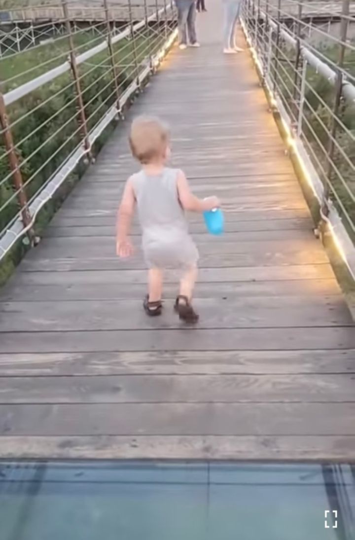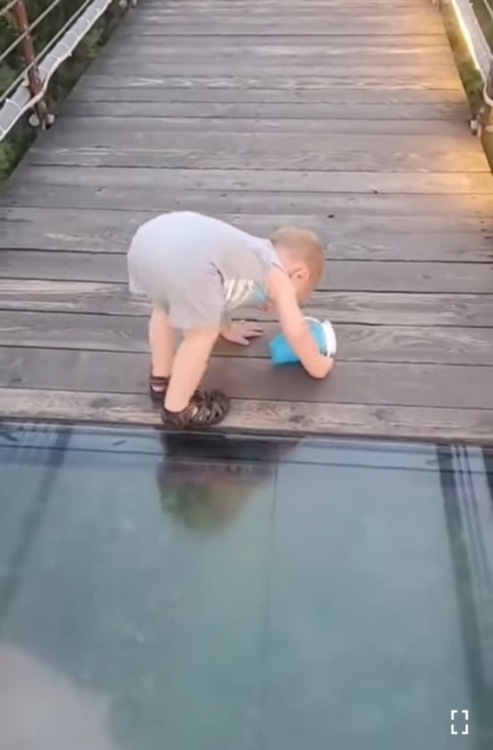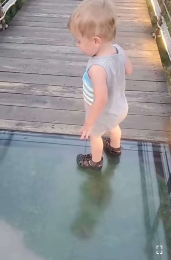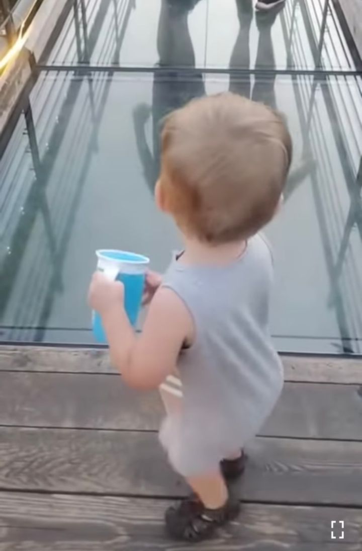 3. 「よし!今日はこのくらいで勘弁してやろう」ガラス張りのつり橋を渡ろうとした男の子の行動が超かわいい!