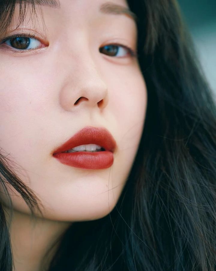 黒をにじませたような、深くて濃い色みのリップは、下地に赤みを仕込んで、マットすぎない適度な湿度を感じる質感を選ぶのが今っぽくなる秘訣。