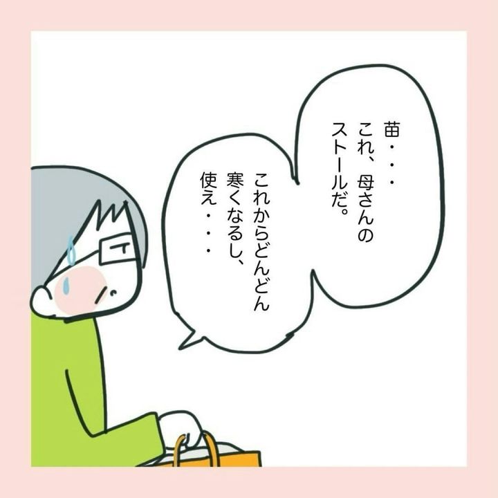 苗さんは病気になり、落ち込むことはもちろんありますが、周囲の人の優しさをより鮮明に感じられるようになっていました。父から渡された母の形見のストールは、苗さんにとって何より励みになったのではないでしょうか。