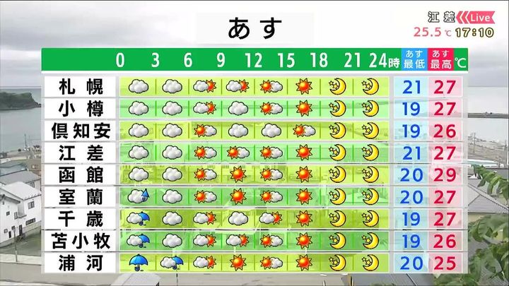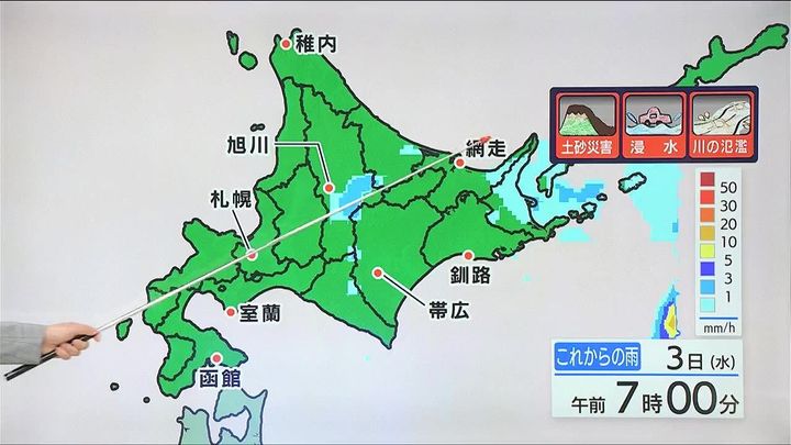 今後は札幌では今夜いっぱい雨が降りやすく、渡島半島では今夜、再び雨が強まります。旭川など道北やオホーツク海側でも今夜は雨が降ります。
