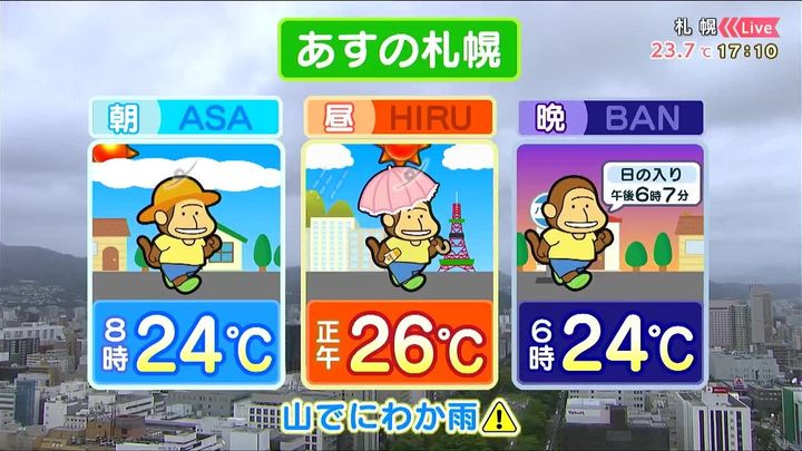 あす3日(水)の札幌です!朝昼晩の天気をもんすけでお伝えします!