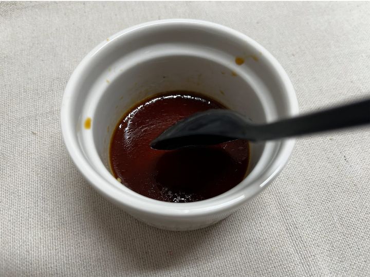 2.オイスターソース、ウスターソース、しょうゆ、みりんを混ぜて、特製ソースを作る。