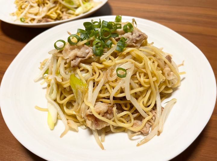また豚肉の旨味が麺にしっかり絡んで、コク深くてジューシー。野菜はもやしと長ねぎだけですが、その分、素材の自然な甘味とシャキシャキとした食感がいいですね。