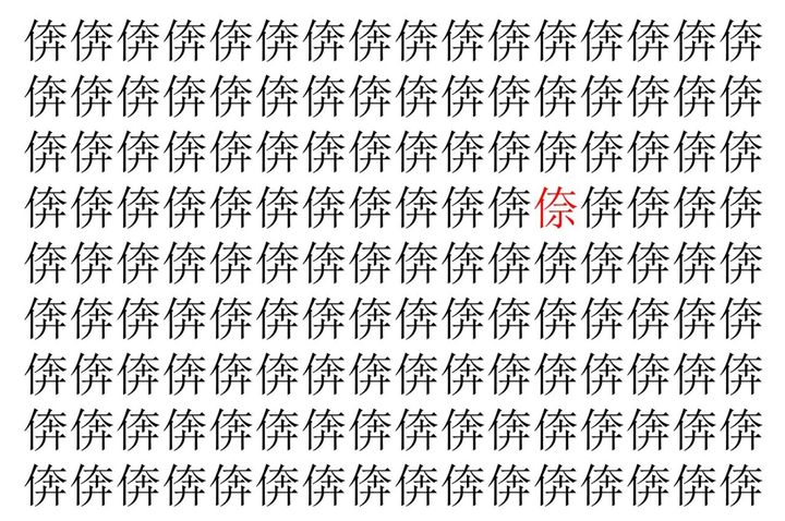 2. 【脳トレ】「倴」の中に紛れて1つ違う文字がある!?あなたは何秒で探し出せるかな??【違う文字を探せ!】