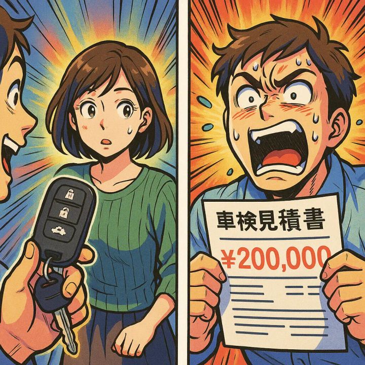 『車検の見積もり…。タイヤも交換しなきゃいけないらしくて、20万超えるんだって…。それに、自動車税の通知も来たし、駐車場代も保険料も…。ああ、もう、なんでこんなに金がかかるんだ!』