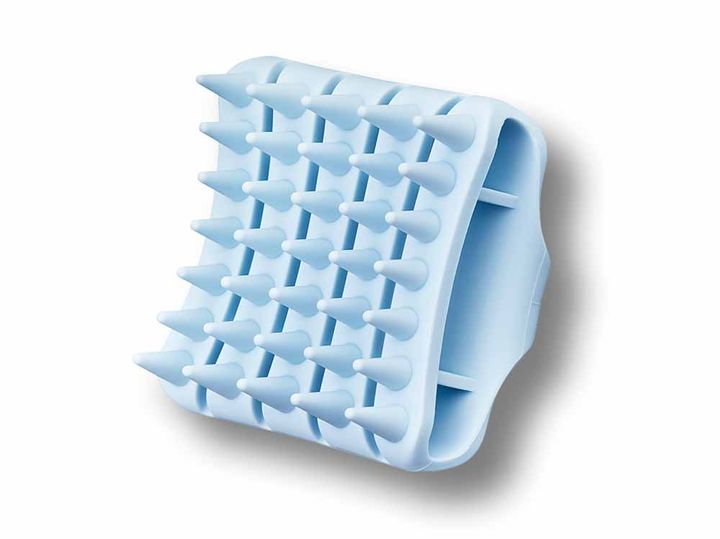 この季節は頭皮汚れをしっかりと落とすことが大切。ぐにゃっと柔軟に曲がるシリコーン製のブラシはピン部分が非常に柔らかく、ダメージを受けた頭皮にも優しいのがポイントです。