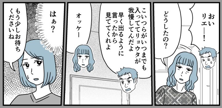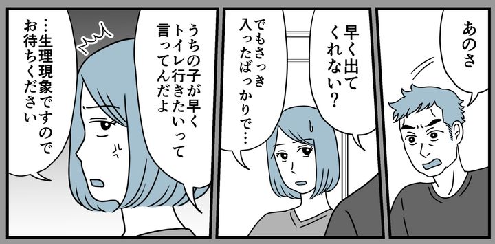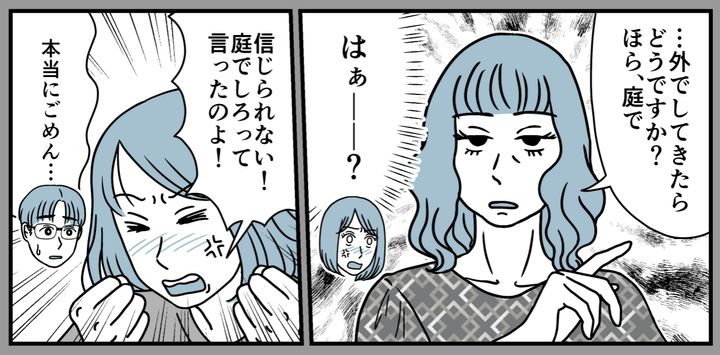 息子がトイレに入ると義兄が「うちの子に譲れ」と迫ってきました。さらに義姉のリエさんまで、「まだ小さいんだから外でしてきたらどうですか?」と庭を指さして……。義兄もずいぶんな態度ですが、リエさんの主張の強さも相当なものです。本当にあきれました。