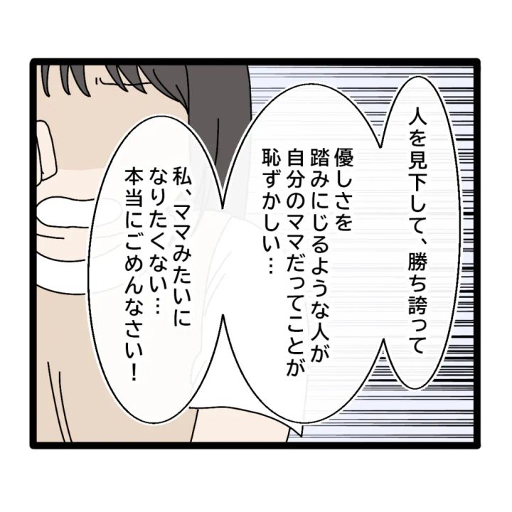 「人を見下して、勝ち誇って、優しさを踏みにじるような人が自分のママだってことが恥ずかしい・・・。私、ママみたいになりたくない・・・。本当にごめんなさい!」思いの丈を伝えると、サクラちゃんは涙をぬぐいました。