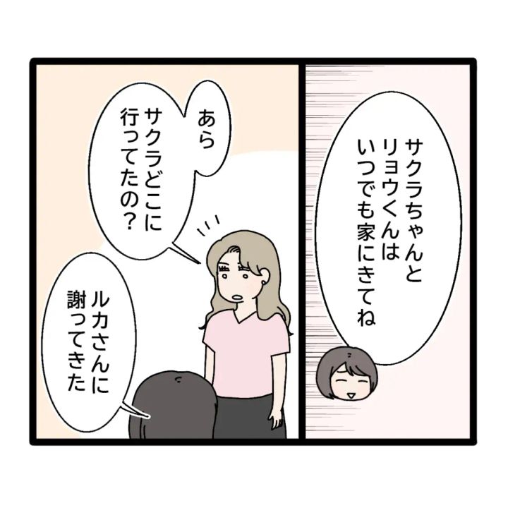 母親ユキさんの無神経な言動が許せず、ひとりでルカさんの家まで謝りに来たサクラちゃん。