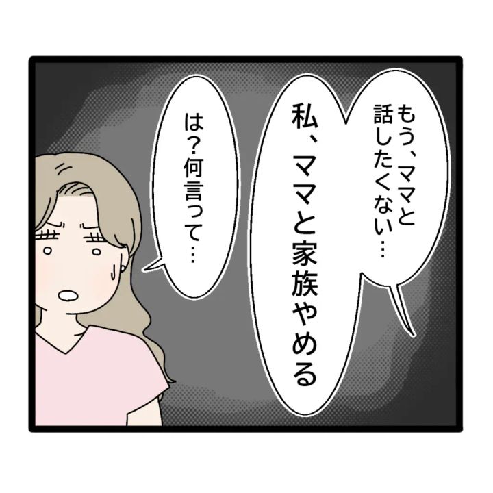そして、静かに、でもハッキリと「もう、ママと話したくない。私、ママと家族やめる」と宣言しました。真剣な表情で帰宅した娘のまさかの発言にはユキさんもさすがに「は?何言って・・・」と言葉を詰まらせ、焦りを隠せませんでした。