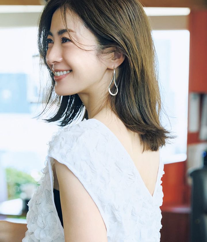 巻き髪、フルメークで隙なくバッチリ決めすぎると、夏はちょっぴり暑苦しさも。意識的に抜け感を作り、引き算する勇気を持って。