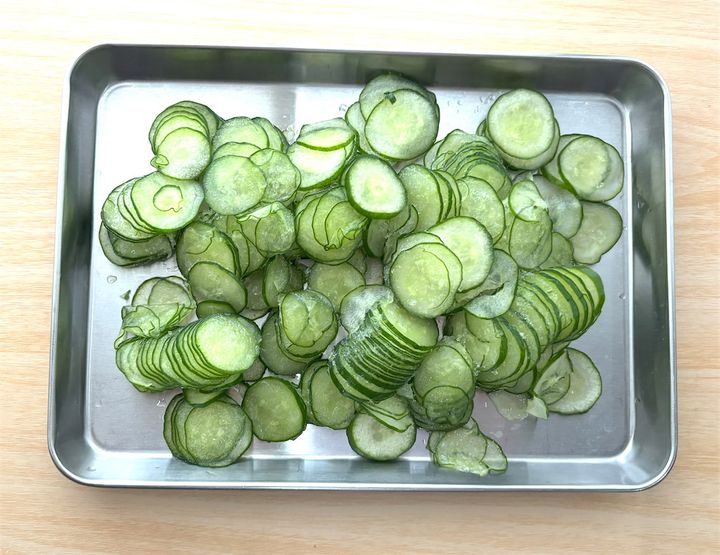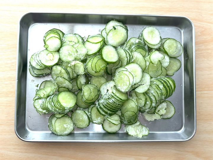 薄くスライスして冷凍したきゅうりは、そのままの状態で自然解凍します。