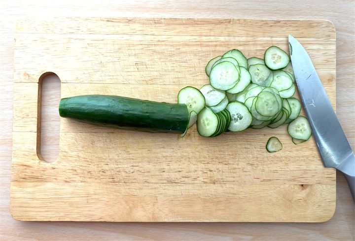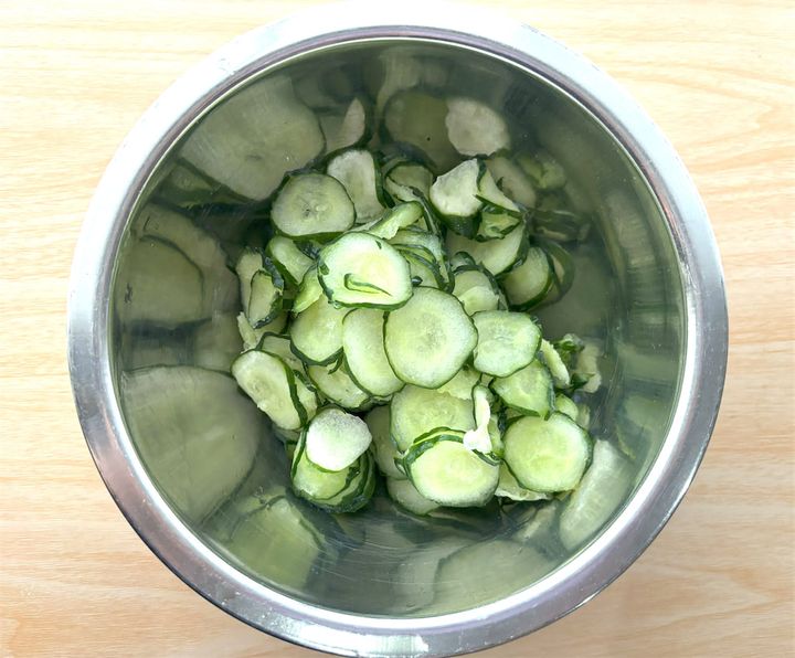 スライスしたきゅうりは、水気をしっかりと絞ってから料理に使いましょう。