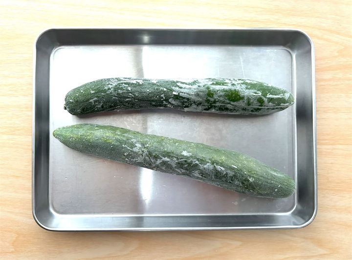 今回の「冷凍きゅうり」は、動画によると「1本そのまま」「スライス」どちらとも約3週間、冷凍保存が可能なのだとか。