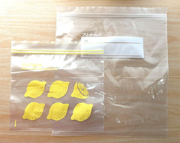 ジッパー付き保存袋(大)と(中)を1枚ずつ準備します。