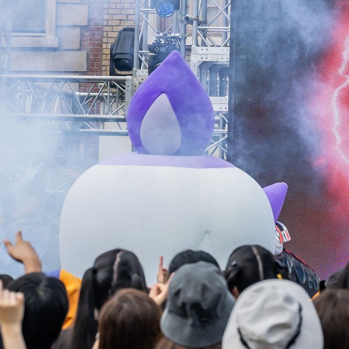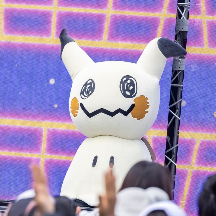 ゴーストタイプのポケモンの楽曲にのせて、ムウマ、ジュペッタ、ミミッキュが登場し、会場を盛り上げます。
