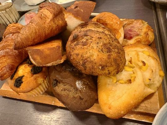 塩コーンバゲット、カマンベールダッチ、チョコアーモンドマフィン・・