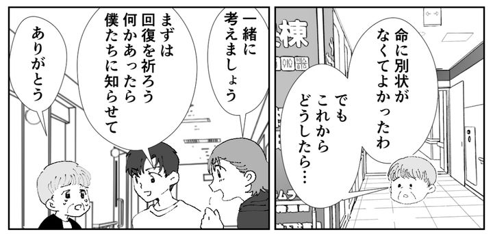 3人になると、義母は緊張の糸が切れたといった感じでした。そして、今後のリハビリについての不安を口にします。