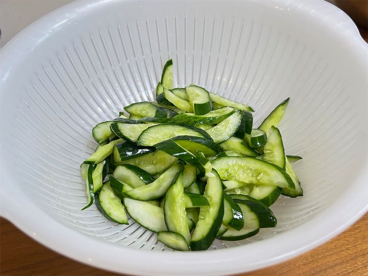 きゅうりは塩揉みしてからしぼることで、食感が良くなるとのことです!