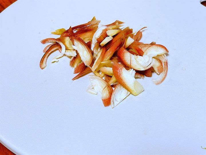 根元を切り落として縦半分に切り、さらに斜め薄切りに。