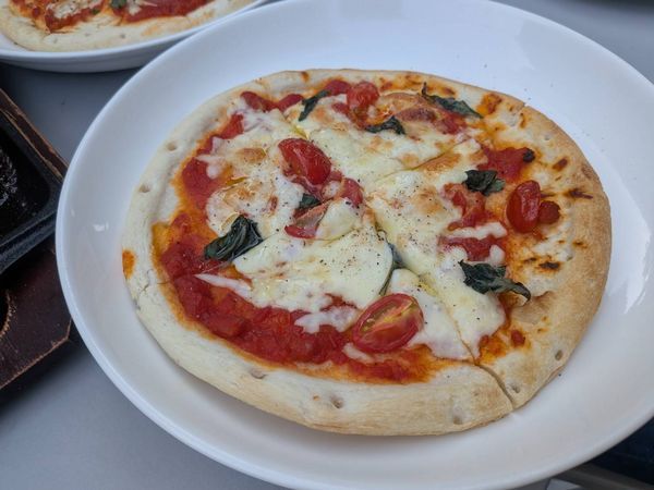 高温で一気に焼き上げるという「ピザ」、外はパリパリ、中はふんわり。