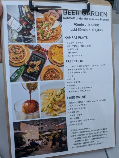 今回利用したのは、予約サイトから予約した【テラス席利用限定プラン】BEER GARDEN / KANPAI Under the Summer Breeze+90分飲み放題プラン。