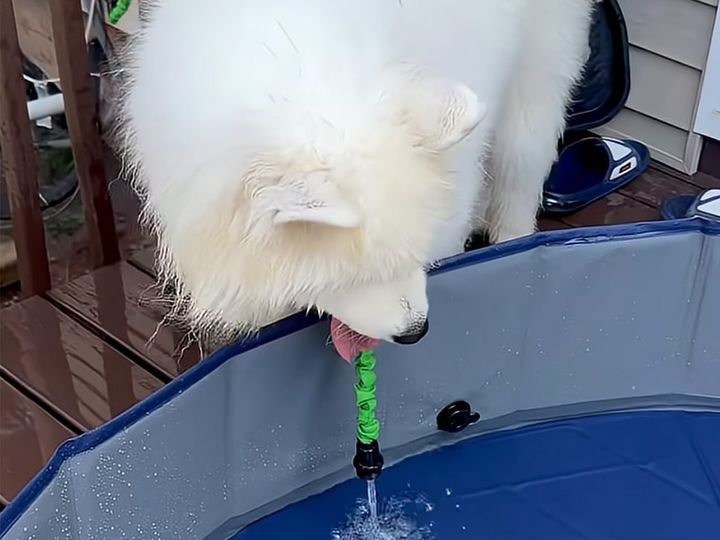 涼しい水遊びに挑戦したいけれど 優柔不断すぎるサモエド犬さんの可愛い迷い顔