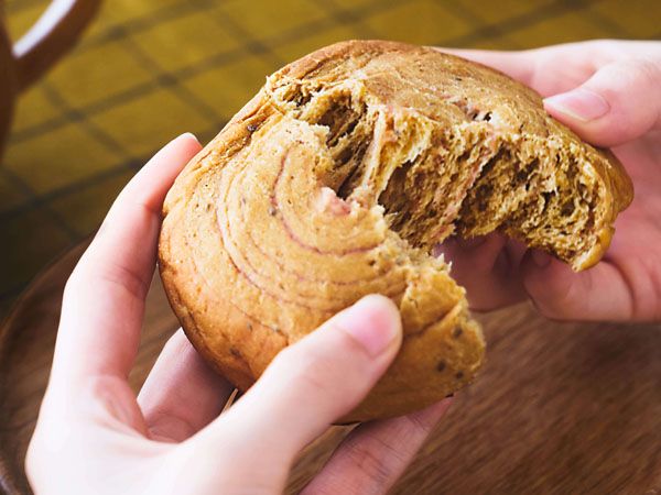 新製品「BASE BREAD さつまいも」の最大の魅力は、その味と食感へのこだわりです。「BASE BREAD さつまいも」には、紅はるかを厳選して使用し、その自然な甘みがしっとりふっくらとしたマーブルパンに広がります。