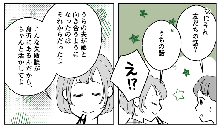 どうやら姉も私と同じように、育児に非協力的な夫に悩んでいた様子。子どもが大きくなって母親と父親への態度に差が出はじめて、父親としての自覚を強く持ちはじめたのだそうです。わが家と似たケースがかなり身近にあったことに驚きましたが、姉の話にはとても説得力がありました。