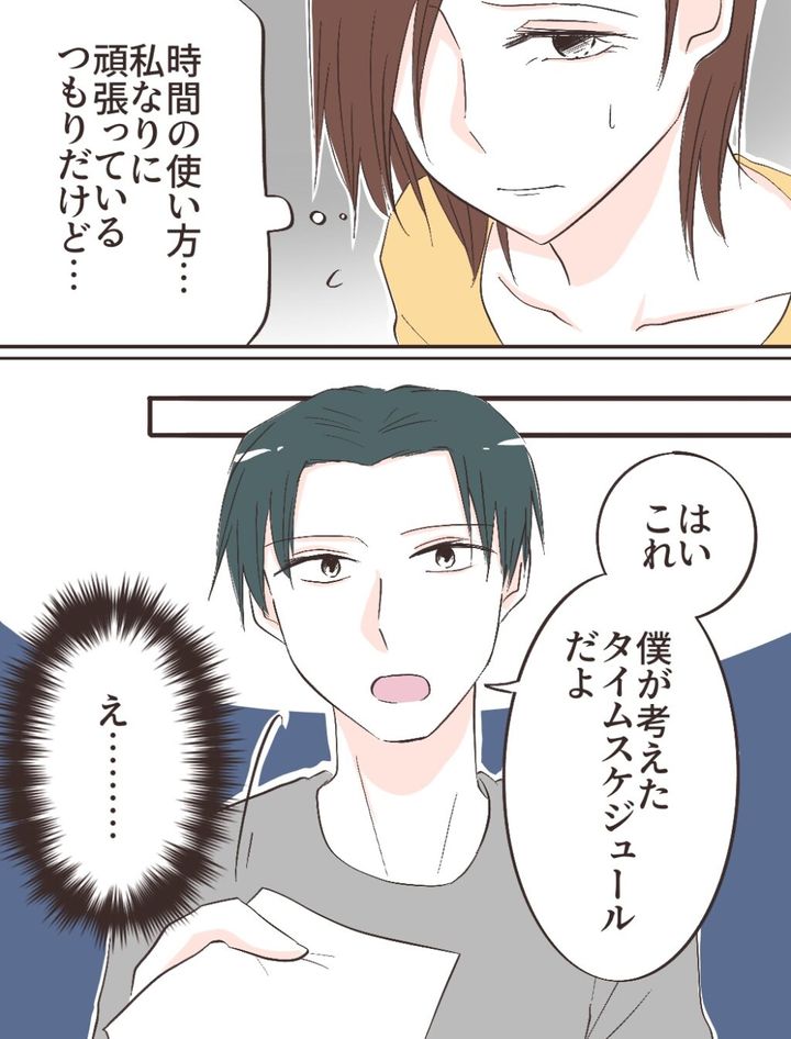 その後、「はいこれ。僕が考えたタイムスケジュールだよ」そう言われて「え・・・」と動揺してしまいました。