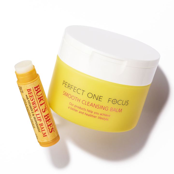 左から:天然由来成分100%の高保湿バーム。口紅前の保湿&下地として。リップバーム《ビーズワックス》(ミントの香り)¥990(バーツビーツ)バームタイプで肌をケアしながら毛穴汚れをごっそり。パーフェクトワンフォーカス スムースクレンジングバーム 75g ¥2,970(新日本製薬)