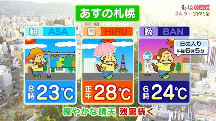 あす4日(木)の札幌です!朝昼晩の天気をもんすけでお伝えします!