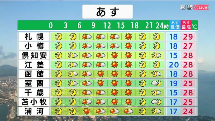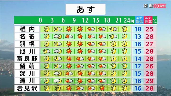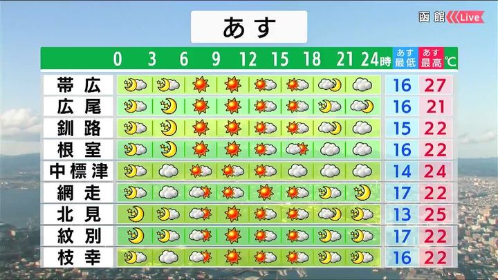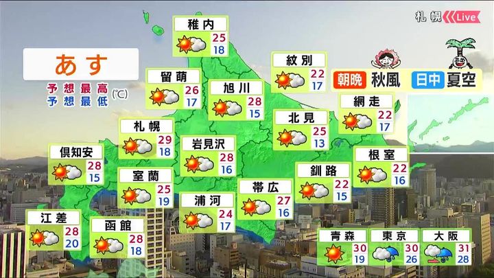 ・あすの札幌の朝昼晩の天気