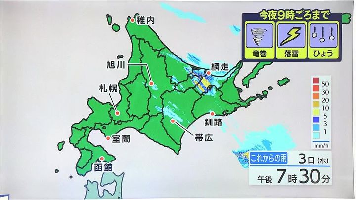 ※3日午後5時時点の情報です。最新の気象情報は、HBCウェザーセンターのホームページなどでご確認ください。HBCは気象庁の認可を2001年に得て以来、民間気象会社の一つとして「HBCの独自予報」を発信しています。