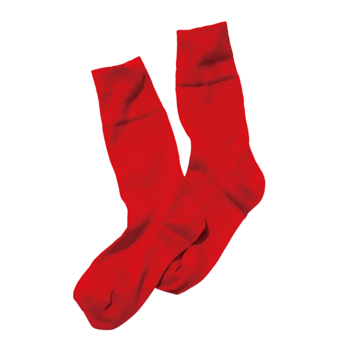 コーデを彩る差し色ソックス。シンプルな赤一色だからこそ強いアクセントになる!