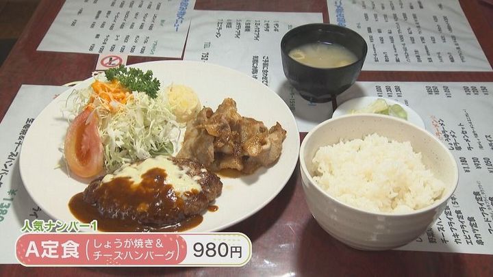 しょうが焼きとチーズハンバーグが一度に楽しめます。
