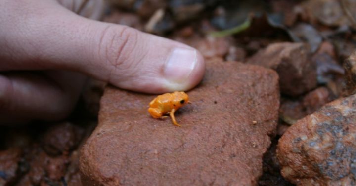 その名の通り、鮮やかなカボチャ色が特徴的で、体は親指の爪に収まるほど小さく、”世界最小級のカエル”と言われています。