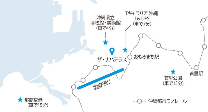 立地は那覇市の新都心で、国際通りまでは徒歩15分。首里城などへの観光や酒場街、空港にも比較的近く、最後の一泊に最適である。