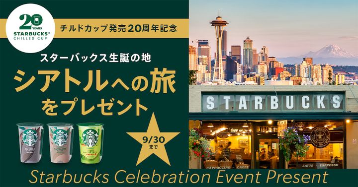 スターバックス® チルドカップの20周年を記念して、スターバックス誕生の地・シアトルへの旅行などが当たる、豪華なプレゼントキャンペーンも実施されるそうですよ!