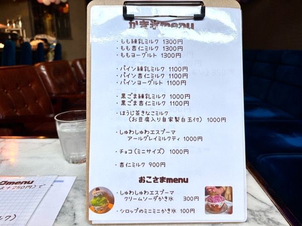 その他、パインや黒ごまもあります。ミニサイズもありますがサイズ的には程よい大きさなのでカレーの後にオススメですよ♪おこさまメニューもあるのでファミリーでも是非。 尚、かき氷は通年を予定しています。店名に「きまぐれランチとかき氷」が入っているのも納得です。三宮で通年氷は嬉しい♪