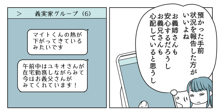 安心した私はグループLINEで状況を報告しましたが、義兄から「マイトが発熱したなんて知らなかった」という返信があり、私はイヤな予感がしています……。