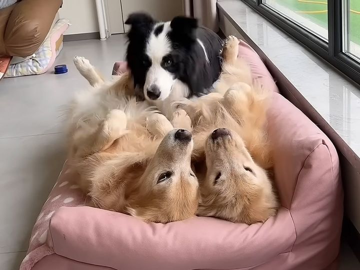3. 3匹でぴったり寄り添ってお昼寝、ふわふわサンドイッチ状態で眠る犬さんたち