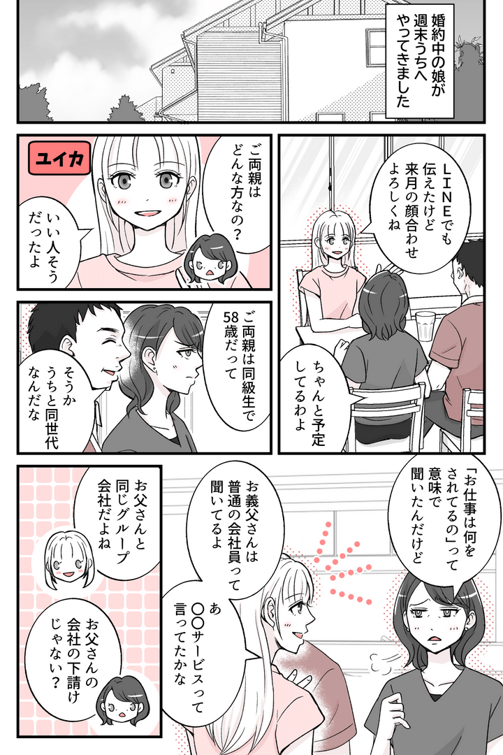 婚約中の娘が顔合わせの予定を伝えるとともに、相手の家庭状況を教えてくれました。
