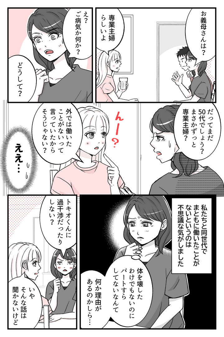 娘の婚約者が優しそうで安心していましたが、その母親……つまりは娘の義母になる相手がずっと専業主婦だということが引っかかります。私たちと同世代でまともに働いたことがないというのは不思議な気がしました。しかもまだ50代です。体を壊したわけでもないのに、パートすらしていないなんて、何か理由があるのでしょうか。