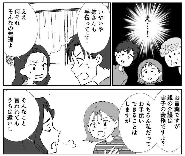 <義姉、介護を丸投げ!?>「遠いし子ども2人だからムリ」介護しない理由にドン引き【まんが】