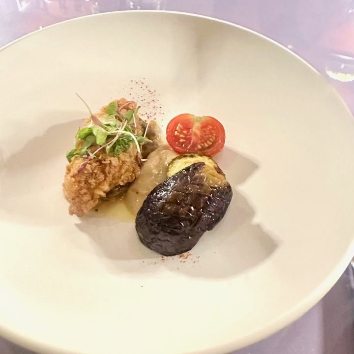 ディナー「シーズナルグリルディナーコース」能登産フグのディープフライ トマトのロースト 夏野菜 コンカイワシのバーニャカウダ