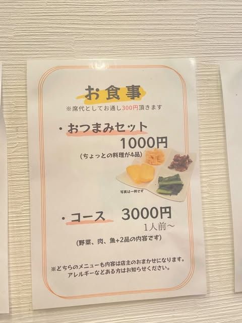 店主おまかせのおつまみセット(4品付き)・コース3000円などをいただくことができます。アレルギーなどがある方は注文時に伝えれば、食べられない食材を抜いて作ってくれます。滋賀・京都・山形・埼玉等、様々な県の日本酒をいただくことができます。お酒好きにはたまりませんね。ぜひ、お酒好きな人は店主おまかせセットに、お好きなお酒をあわせて頼んでみて下さい。