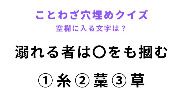 「溺れる者は〇をも摑む」の空欄に文字を入れると、あることわざが完成します。
