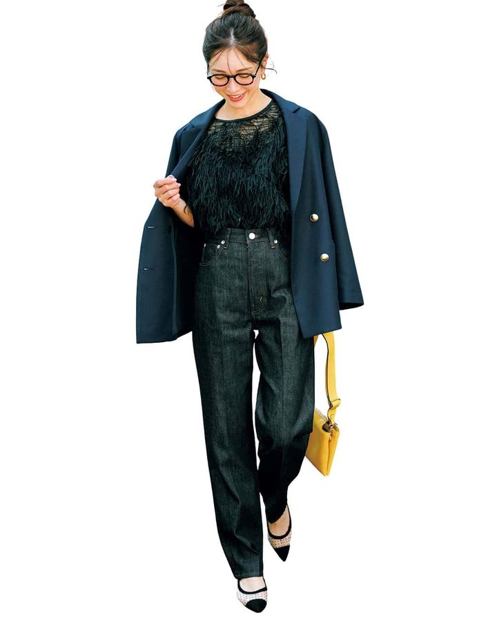 ⑥「万能ジレ」は手持ちのボトムスに合わせるだけでドラマティックに