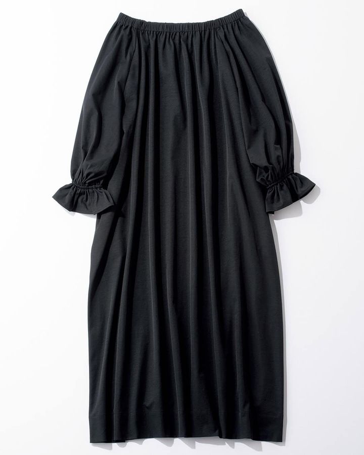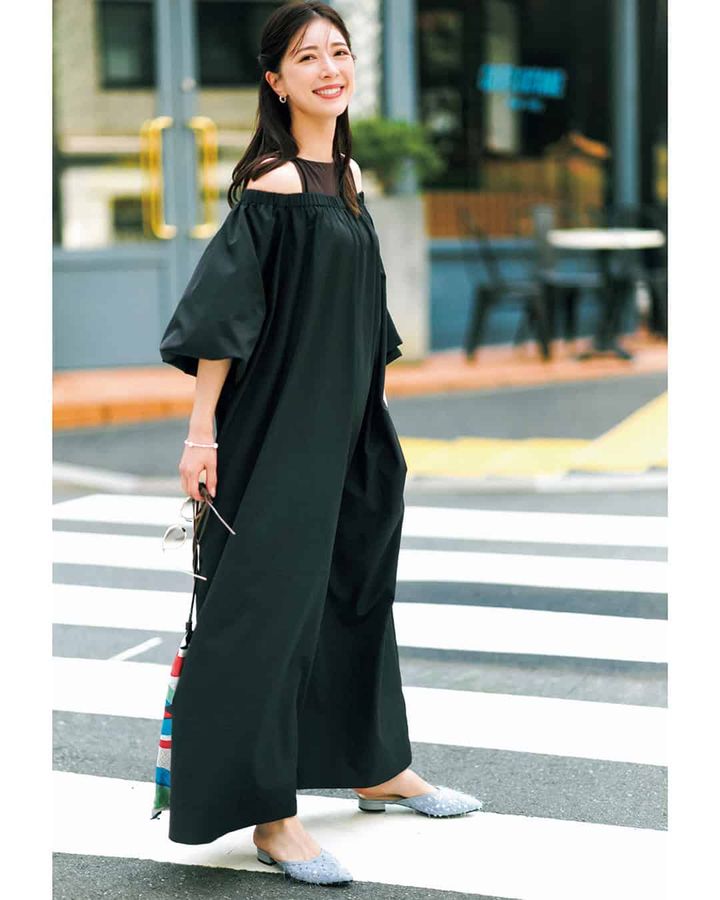 たっぷりとしたシルエットが着るだけで様になるオフショルワンピ。肩を隠して着ることもできるので、肌見せ具合は調整可能。ポケット付きも嬉しい。